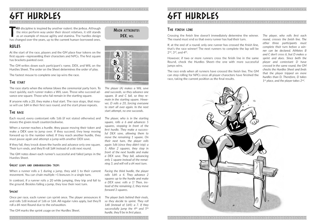 6ft Hurdles is a free sample of the upcoming Mausolympics supplement. Five other sports await in the full supplement. Get your copy on BackerKit!